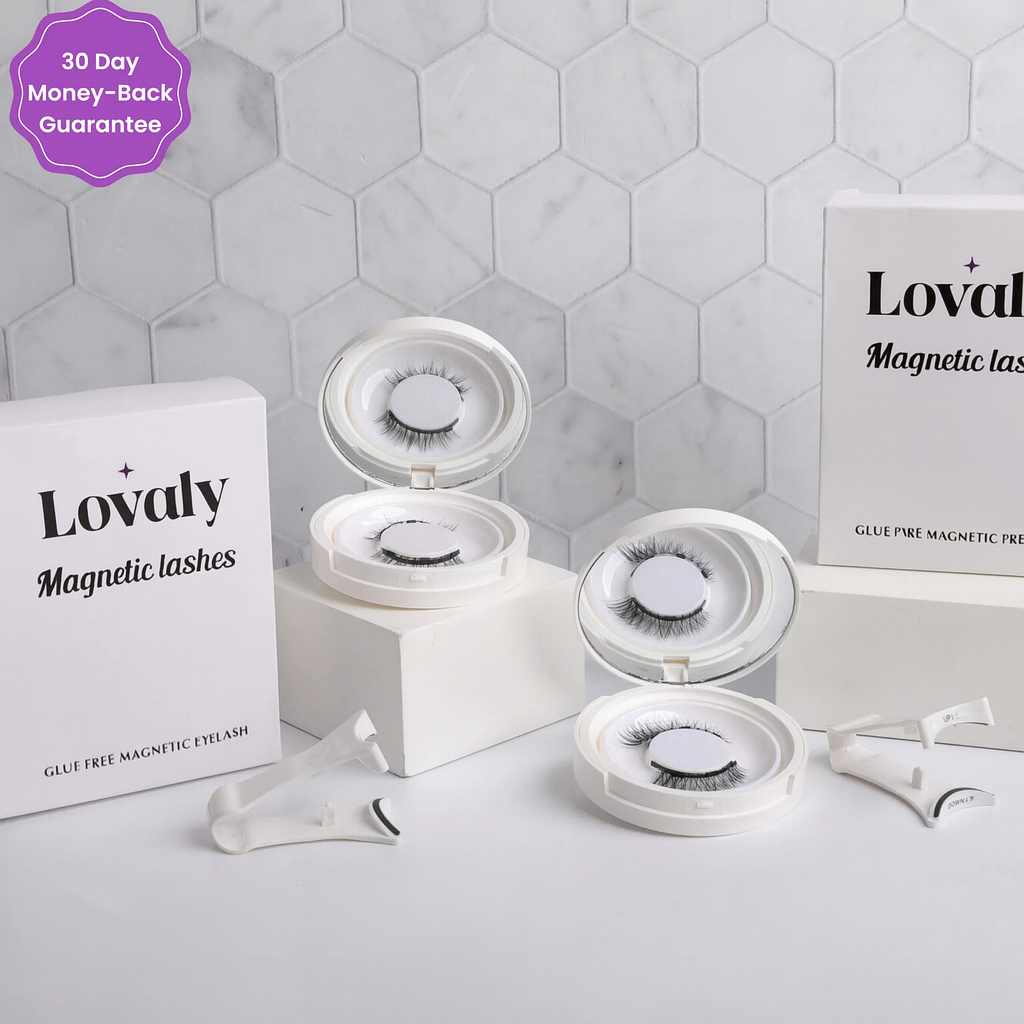 Magnetic lashes use tiny, lightweight magnets to securely attach to your natural lash line—no glue needed. They click into place in seconds for instant volume and length.